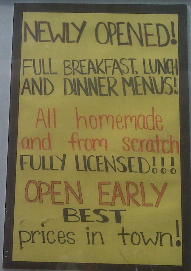This is their M.O., which I guess seems promising enough.  I like both breakfast and lunch, as well as dinner.  I guess I also should have found out if they will serve me breakfast at dinnertime, as this will be the real test.