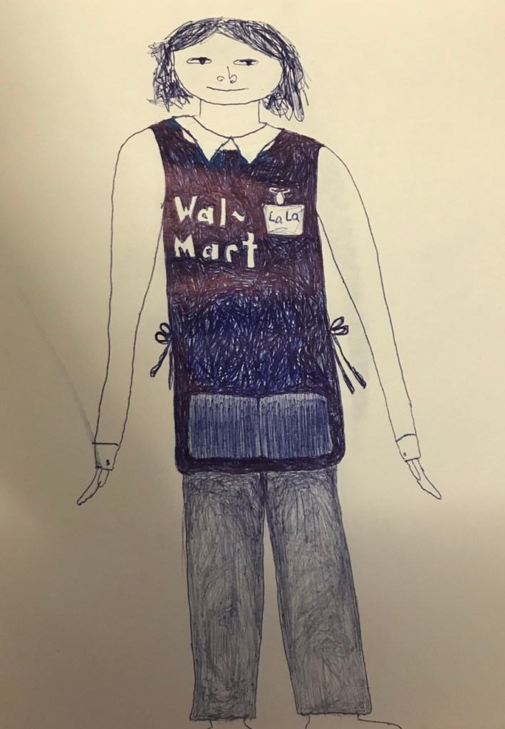 “Self-Portrait of the Artist as a Young Woman Working at Wal-Mart” Ball-Point pen on paper. circa 2009