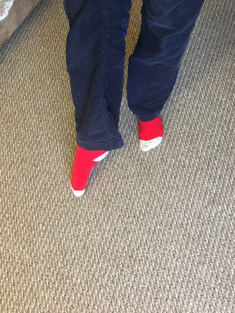 Some fuzzy socks layered over my Christmas red socks from the other day. I’m a big fan of this colour combination. I didn’t wear these to work – they’re far too fancy for work.