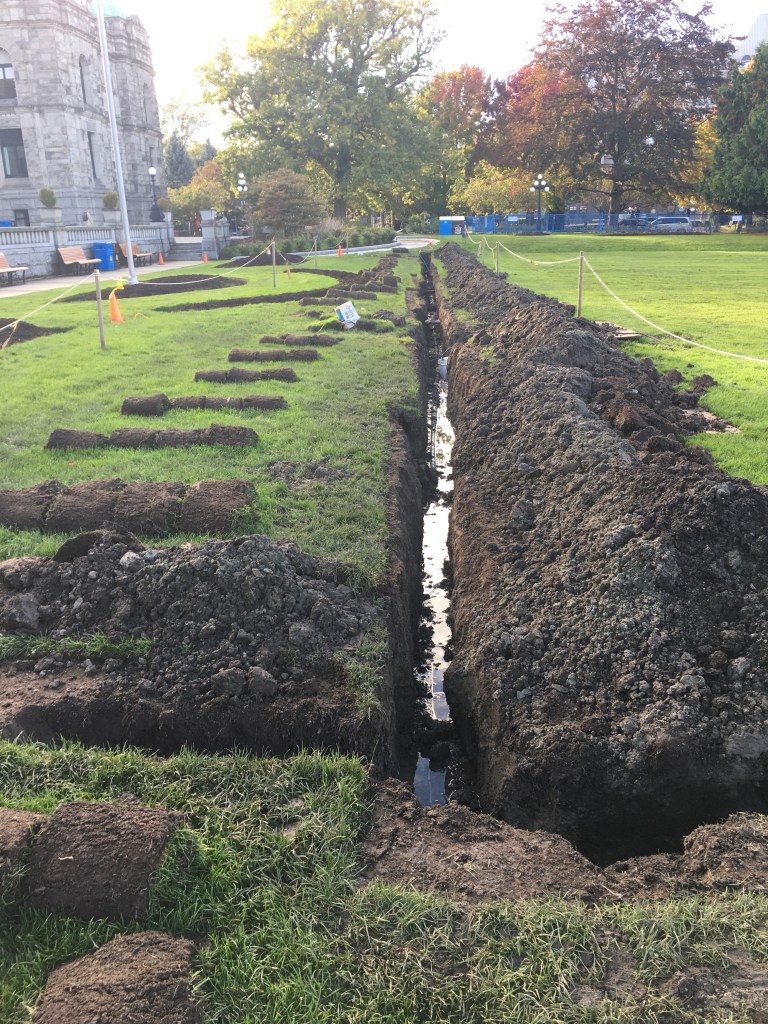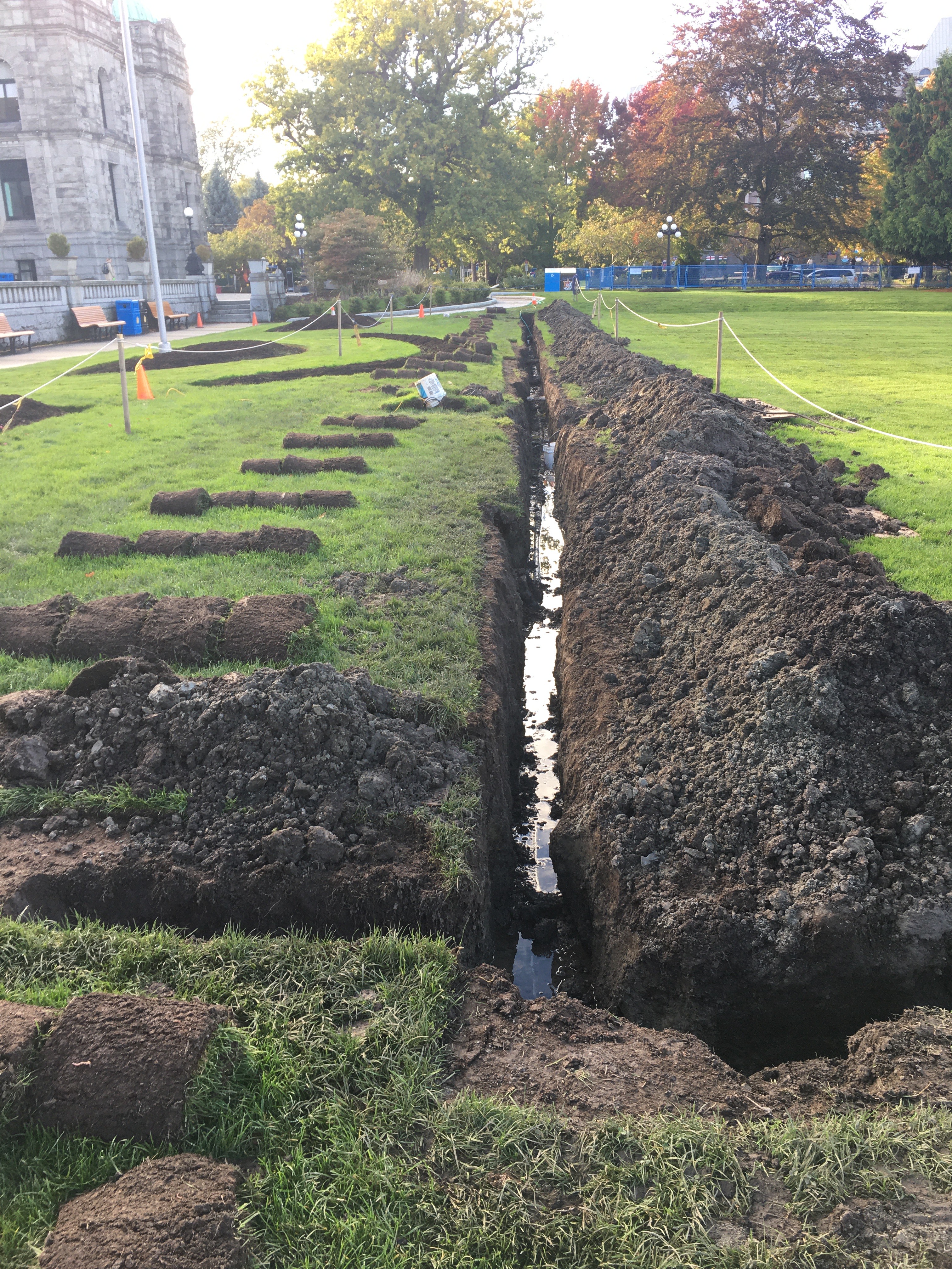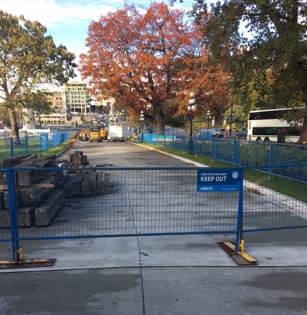 I usually walk down this driveway. I don’t feel very encouraged to do that right now. I walk along the grass to the side with the roses instead (that’s sort of alongside the bus you can see there because I don’t realy show the roses here – you can sort of see them still surviving behind the fencing).The new “ditch” feature on the legislature lawn, alongside the (currently empty) flower beds.The legislature. While I took photos of keep out signs and ditches, most other people were taking photos of this. It’s nice, too. I’m impatient for their Christmas lights to go up. Fun fact: if I ever talk about walking downtown, I’ve probably walked past this, as it is in the way between my house and the rest of Victoria. I can avoid it, if needed, but it’s the shortest way.