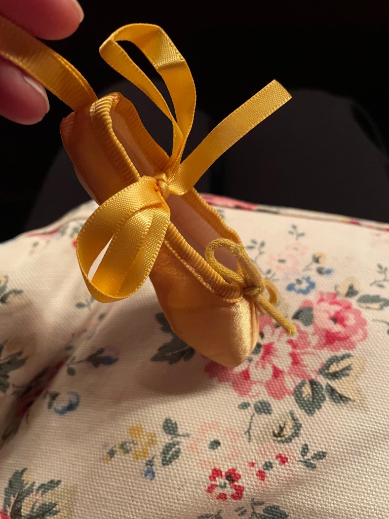 After eating the meal that I described previously, I had time to visit the Gift Shop and bought way too many things, including a wee, yellow pointe shoe. I will likely hang this on my Xmas tree, or pin to my coat or something.