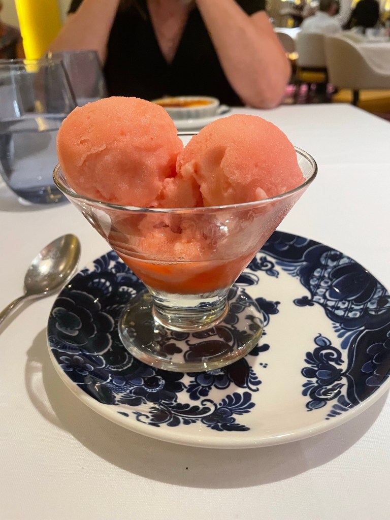 Dinner was the best. Fillet mignon and sorbet for dessert, which I again started eating right away due to excitement, only to be distracted by Mum “ahem”-ing nosily to remind me to take a photo first. I had a plan to hold on to my phone with my eatin’ hand, but it still ended up ignored on the table.
