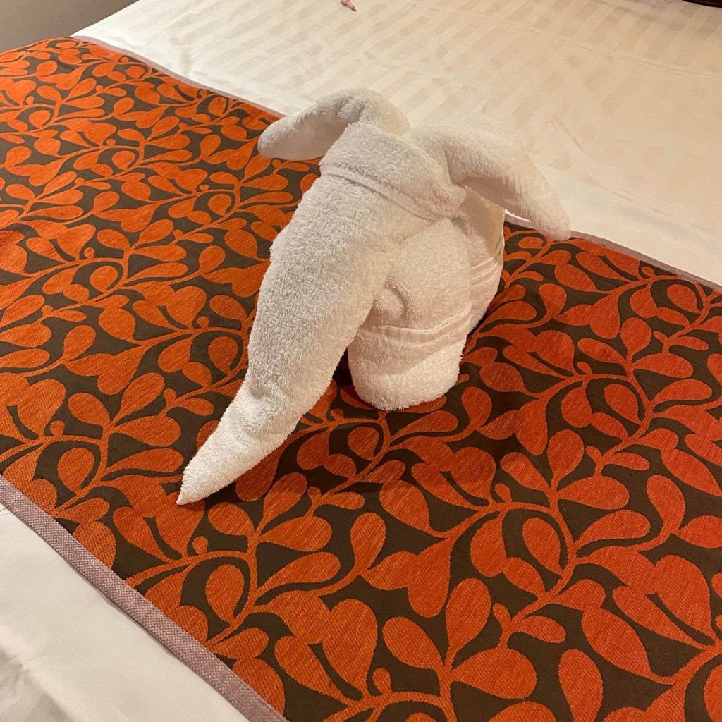 We’ve adapted to our at-sea routine again. Breakfast and a swim/hot tub to start, then yesterday we did some activities; today there’s nothing we want to do. We’re lying in our room after getting changed out of our swimsuits and going to decide the degree of lazy we will be today.