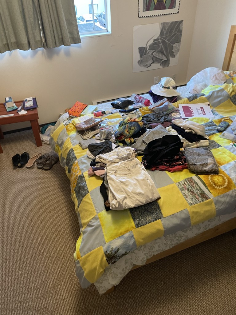 In what is completely unprecedented behaviour for me, I didn’t finish packing for this trip until the night before I was leaving. That was Thursday night. Did I have a big pile of stuff already set aside? Yes. Had I already acquired all the extra stuff I needed to purchase? Yes. Am I taking my big suitcase so all I needed to do was stuff everything inside? Also yes.